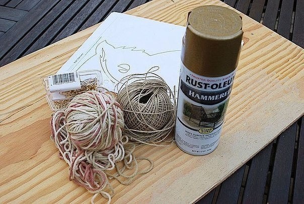 Очень оригинальное панно из миниатюрных гвоздиков и ниток