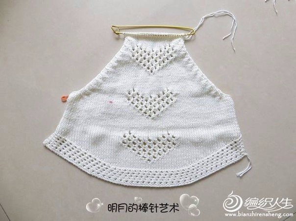 Нежная кофточка с узорами в виде сердечек может быть связана как для ребенка, так и для взрослого.