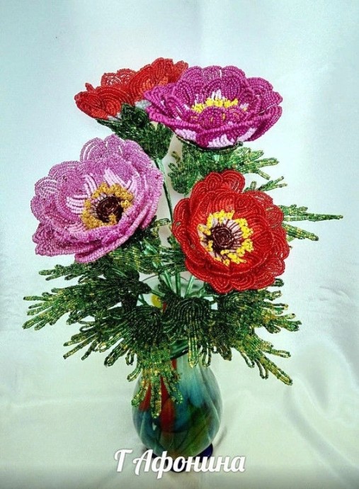 Анемоны из бисераОсенние анемоны – высокие растения, которые развивают красивые, красочные цветы до осени.А анемоны из бисера будут цвести вечно.
