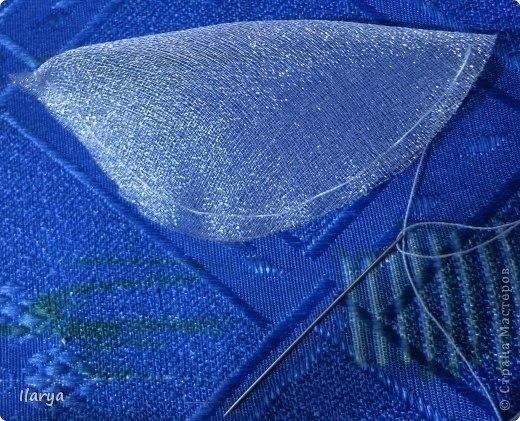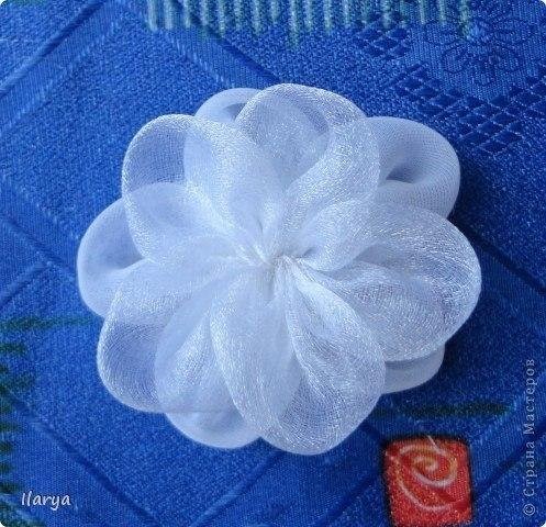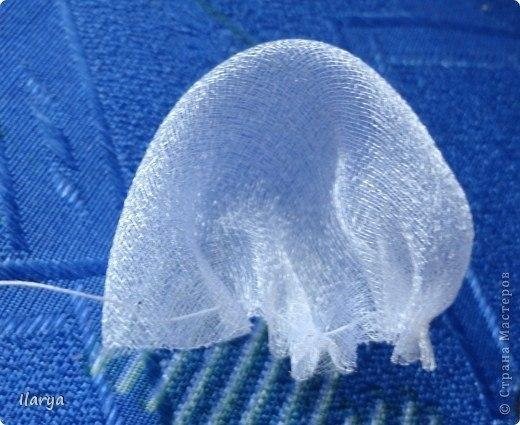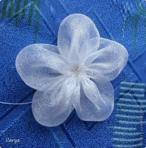 Пышный цветок из фатина полупрозрачен и воздушен.