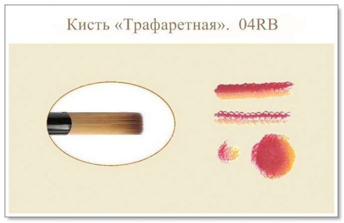 Визуально похожа на традиционную трафаретную кисть. Используется для работы с трафаретами, а также для живописных и декоративных работ.
