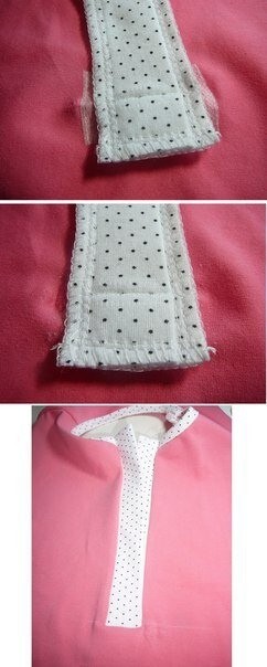 Верхний край планок (при условии, что ткань жутко тянучая) дублируем сантиметровой полоской флизелина, порванного по долевой (фото планки от другой футболки). На этой укрепление делать не стала