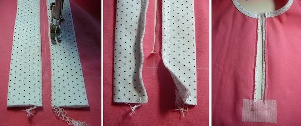 Верхние края планок застрачиваем на ширину лапки, уголок срезаем, выворачиваем и приутюживаем.