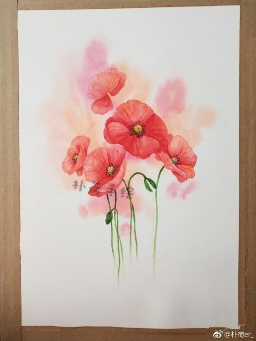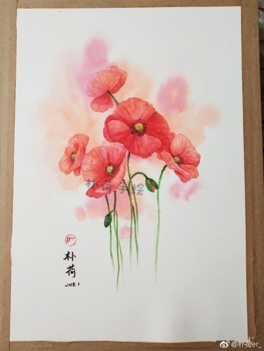Урок рисования акварелью: маки