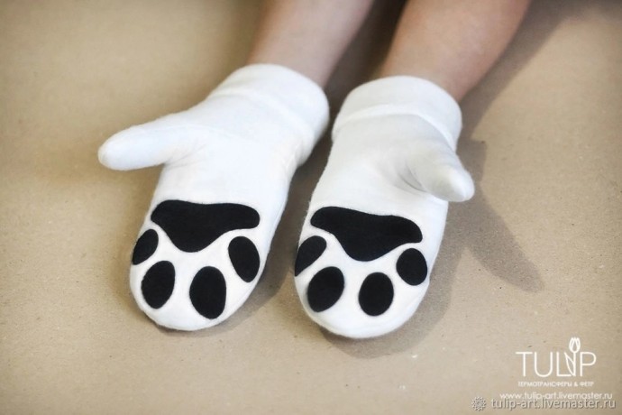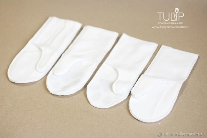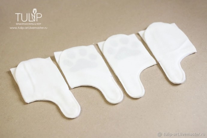 Аналогичным образом поступаем со всеми деталями. У нас получается 4 задних стороны с оформленным большим пальцем. Припуски на швы можно подрезать близко к шву. Флис - ткань прочная и не осыпающаяся, с ней удобно работать.