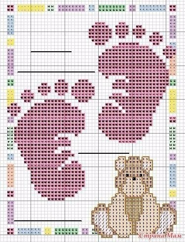 Следы стоп можно как связать жаккардом, так и вышить крестиком.