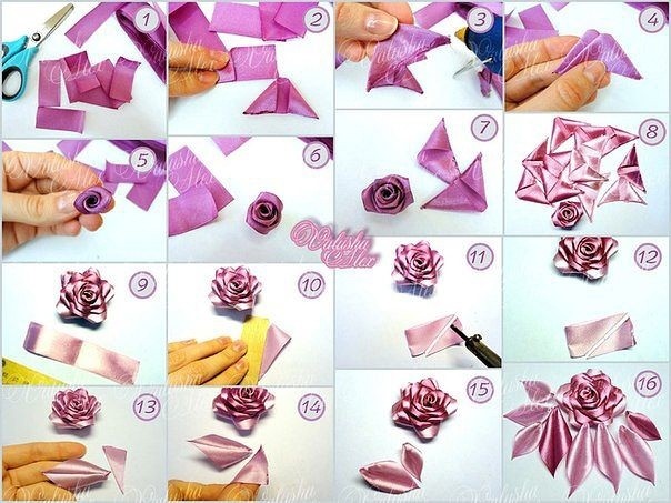 Цветы из лент с длинными острыми лепестками