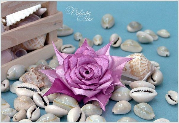 Цветы из лент с длинными острыми лепестками нуждаются в более плотной атласной ленте, чтобы держать форму.