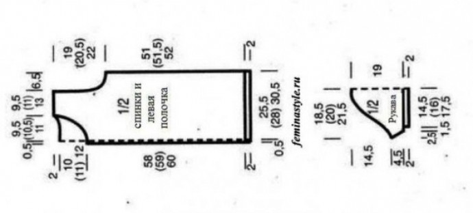 Плотность вязания: лиц. и изн. глади: 12,5 п. и 18 рядов = 10 х 10 см; узор "спящая красавица": 15,5 п. и 18 рядов = 10 х 10 см; узор "коса": 27 п. = 16 см.