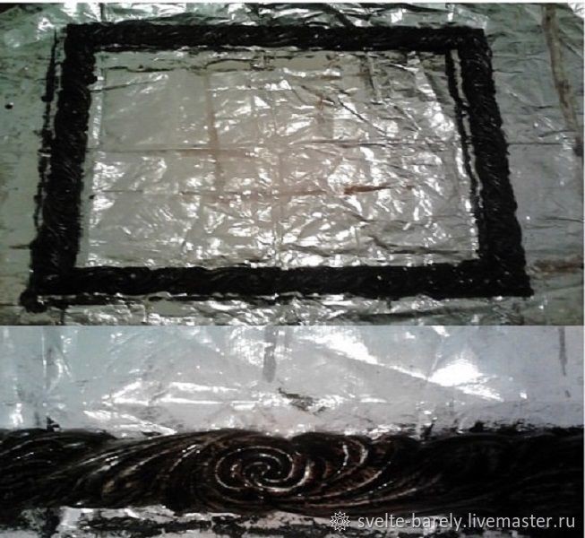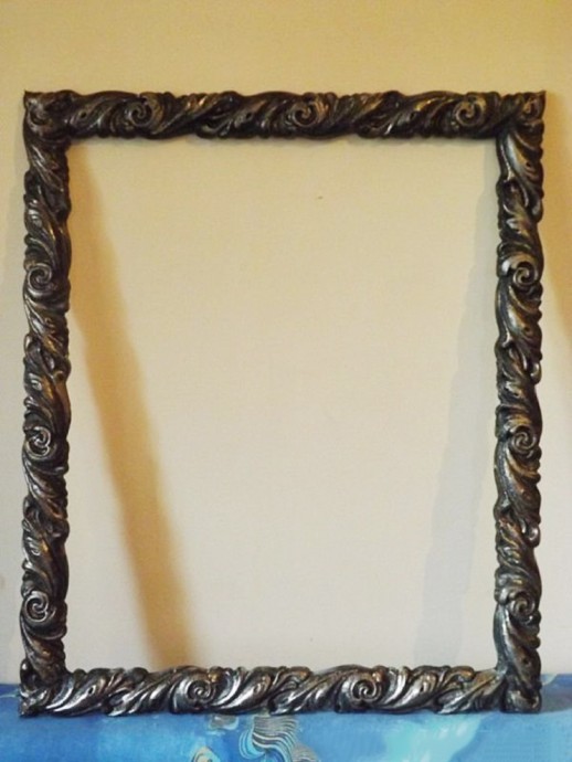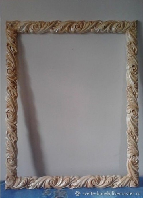 Берём обычный пенопластовый молдинг (лучше твердый). Делаем из него раму нужного размера. Для склеивания углов хорошо подходит клеевой пистолет.