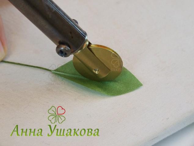 4. Двойным ножом на жесткой подушке с изнаночной стороны листочка нанесите прожилки.