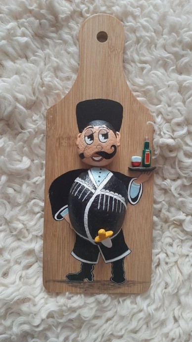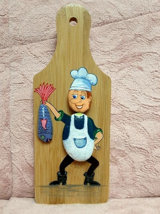 Здесь объединена роспись по камням, по дереву и аппликации из камней.