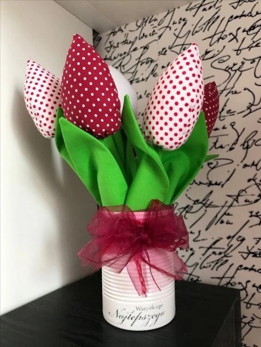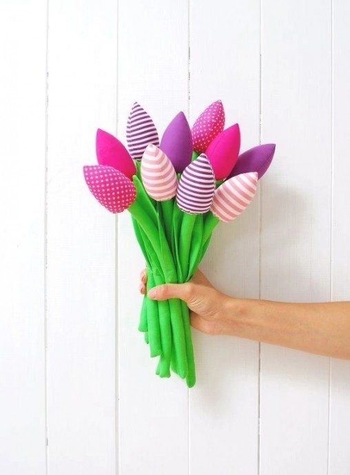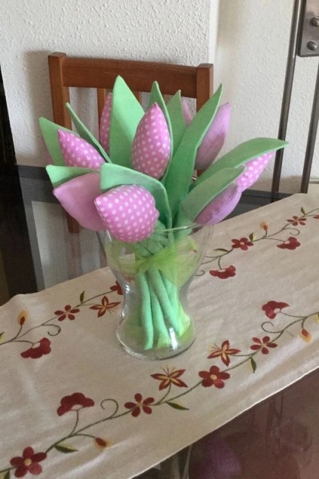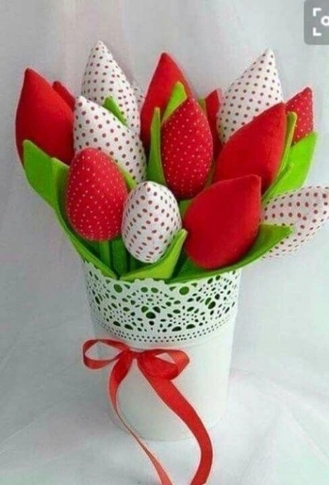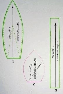 - Зеленая ткань ( стебель, лист)Цветная ткань ( бутон)