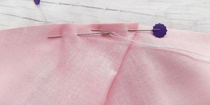 Проложить наметку по всем слоям ткани, закрепляя верхний край складки.