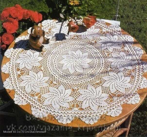 Весенняя круглая скатерть с настроением круговорота приятных дел: лепестки цветов словно закручены в радостном танце.