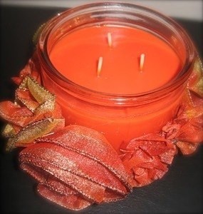 Декор свечи цветами из ленты