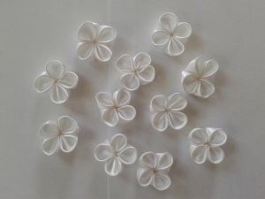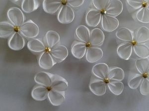 Цветы из атласных лентСложные завитки каждого лепестка отличают эти цветочки от других и делают их еще прелестнее.