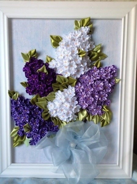 чудесная картина с сиренью из атласных лент