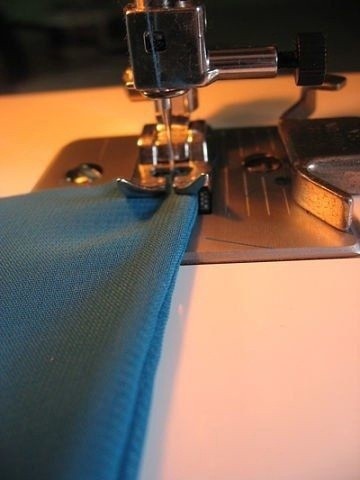 1. Подгибаем срез в сторону изнанки на 5 мм, и настрачиваем на 1-2 мм от сгиба.