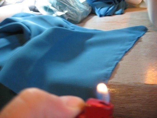 4. Если ткань синтетическая и сыпучая – оплавляем срез.