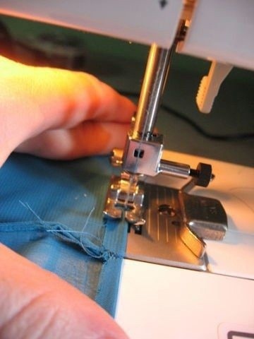 2. Если машина не хочет двигать ткань в начале строчки – пару стежков делаем вручную, а потом осторожно потягиваем за ниточки.