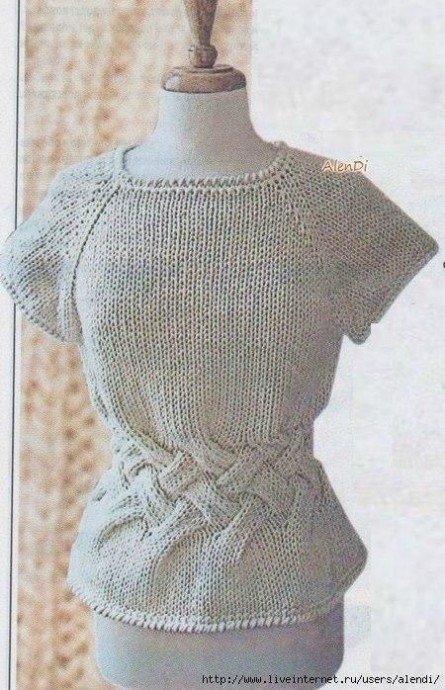 Пуловер с коротким рукавом и красивым плетением на уровне талии