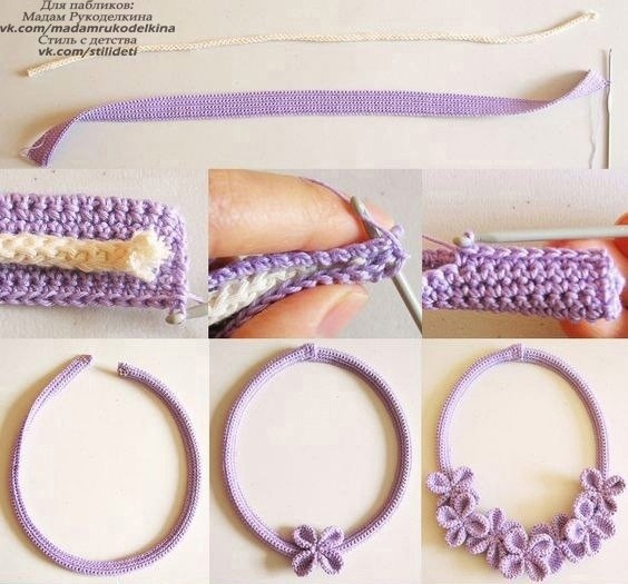 Оригинальное вязаное колье для ценителей ручного труда и красоты, отличающейся от привычных золотых украшений.