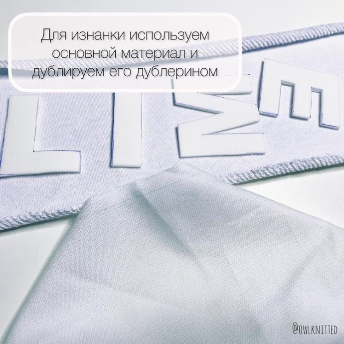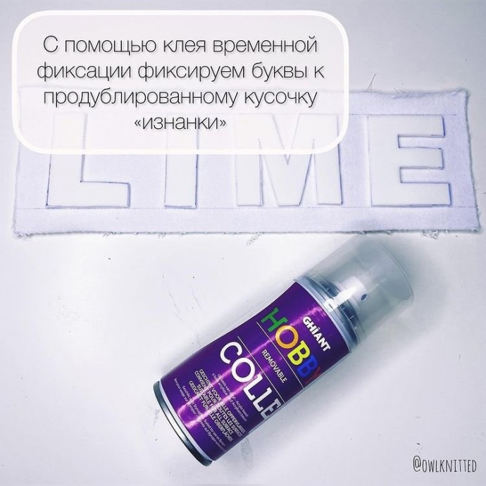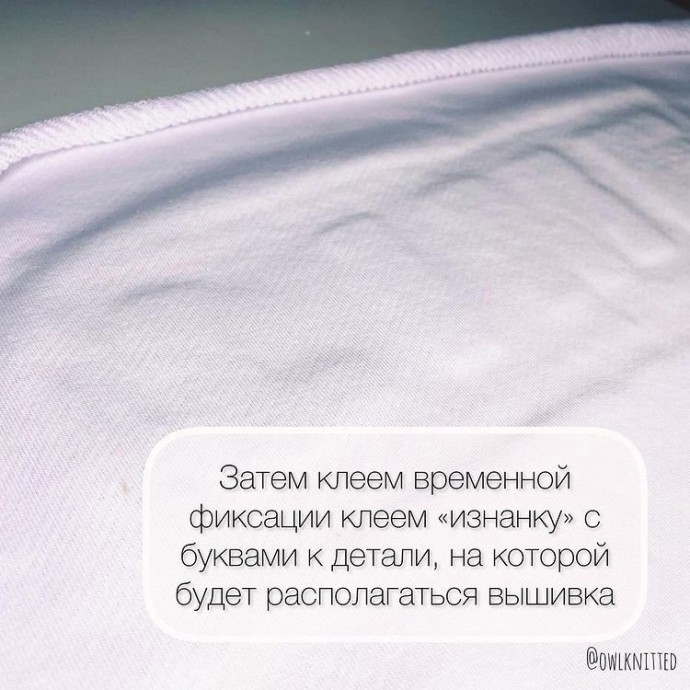 Клеем временной фиксации приклеиваем буквы на «изнанку», а затем к основной детали, где будет располагаться вышивка