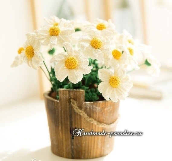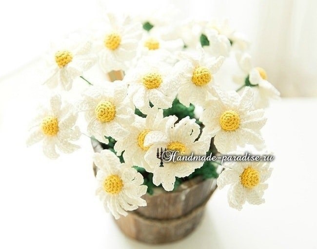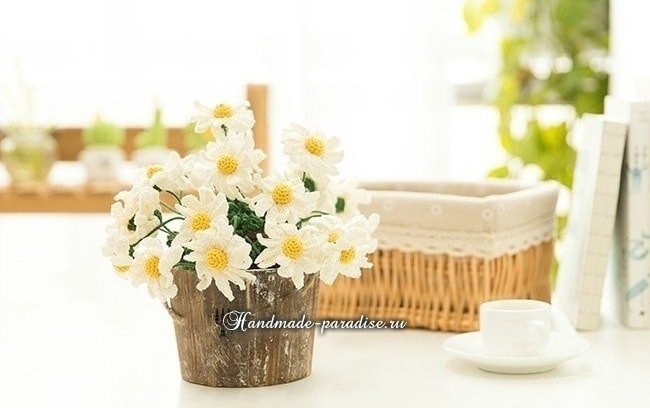 Ромашки крючком созданы с любовью для украшения интерьера.
