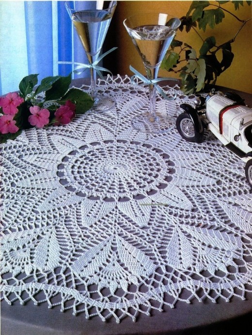 Большая ажурная салфетка крючком может быть скатертью на маленьком журнальном столике.