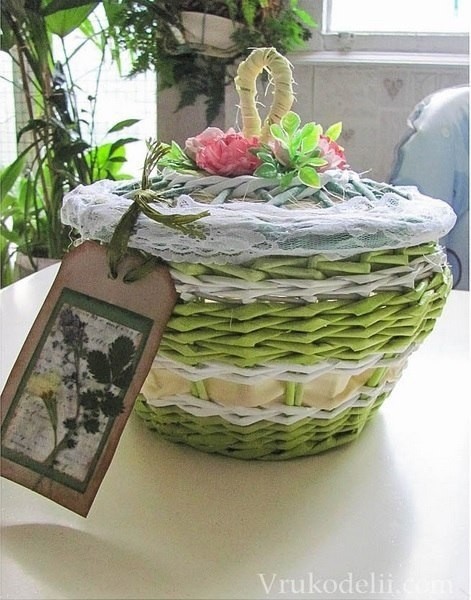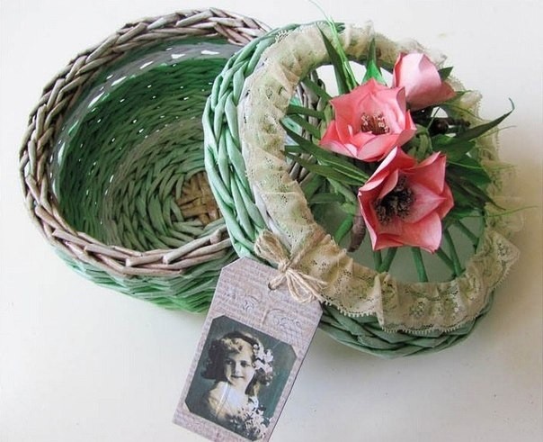 Плетёная шкатулка может быть как органайзером для мелочей, так и красивой упаковкой подарка.