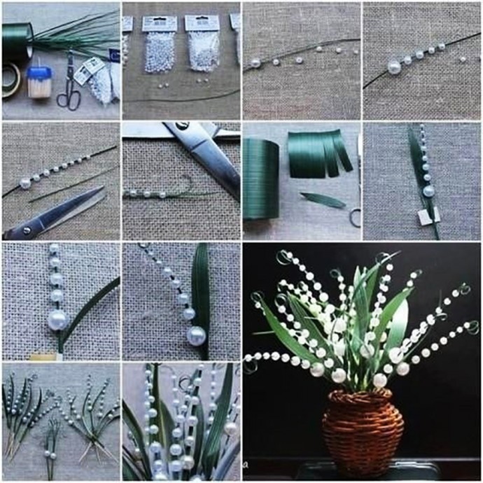 Замечательные ландыши можно сделать из искусственного жемчуга разного размера.
