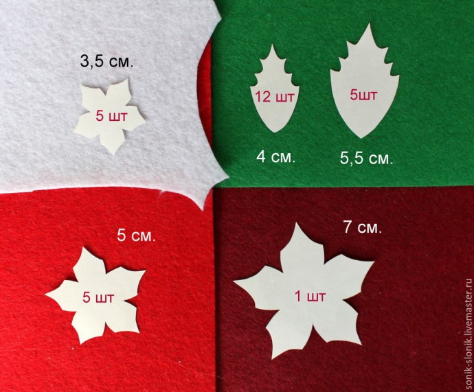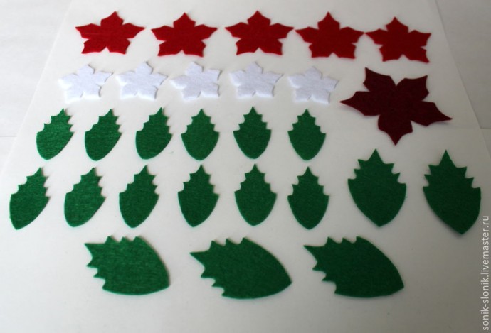 Пока заготовка сохнет, начинаем вырезать из фетра листики/цветочки Пуансеттии