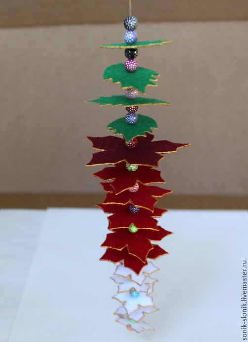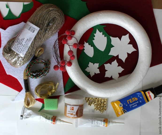 3. Фетр для рукоделия (жесткий или средней жесткости) - бордовый, красный, белый и темно-зеленый.
