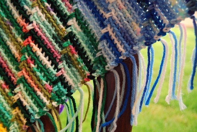 Вяжем все время по лицевой стороне. Идеальный вариант для использования остатков.