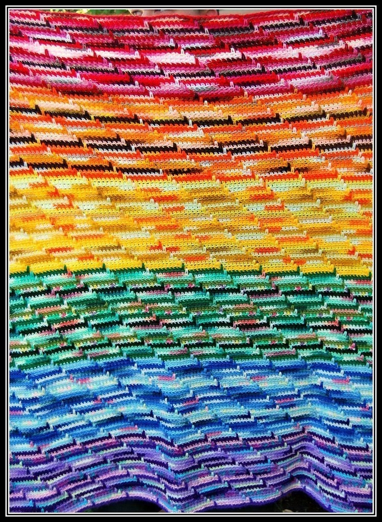 Как пишет автор, это очень старый узор для вязания пледов. Вяжется он столбиками без накида за заднюю стенку петли