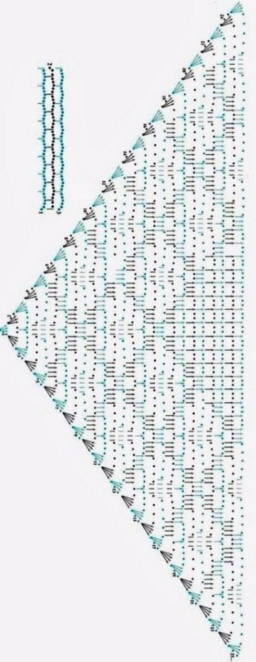 Узор для треугольной шалиШаль вяжется от центра основания.Схема А - установочная. С нее вязание начинается. Вяжется 1 раз.Схема В - основная схема. Вяжется столько раз, сколько хоч...