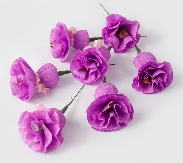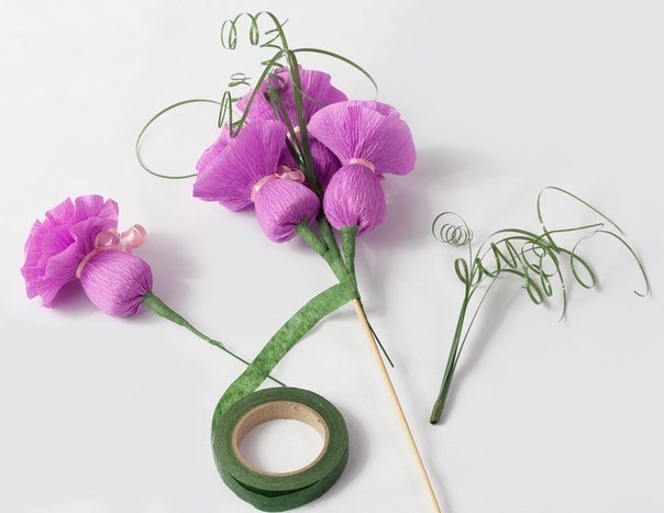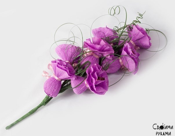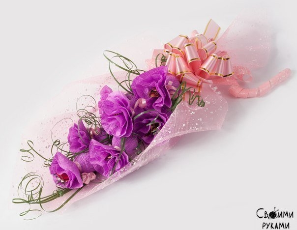 Букет крокусов из конфет и гофрированной бумаги: мастер-класс