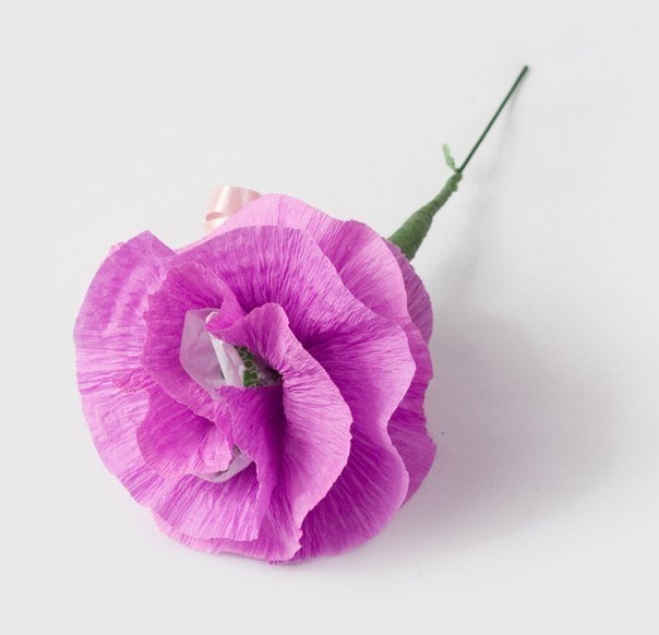 Роза из конфет и гофрированной бумагиРоза из конфет и гофрированной бумаги это лучшие (и к тому же вкусные) цветы по бюджетной цене в наше не простое время.