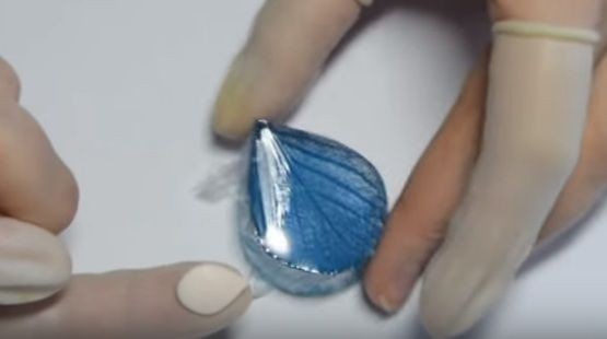 Из белой глины формируем капельки и делаем на них оттиск с помощью заготовки для листьев, или же наносим прожилки с помощью канцелярского ножа. Затем каждый листик нужно немного приплюснуть по бокам, чтобы придать ему естественную форму.