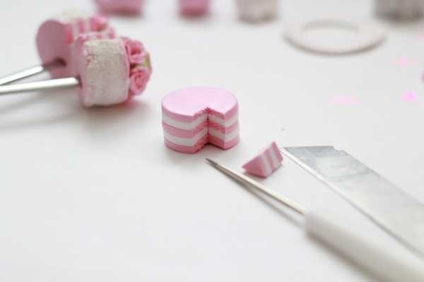 Скатываем из глины розового и светло-розового цвета валики и нарезаем их на кружки толщиной около 0,5 см. Для одной розы достаточно по 3 кружка обоих цветов.