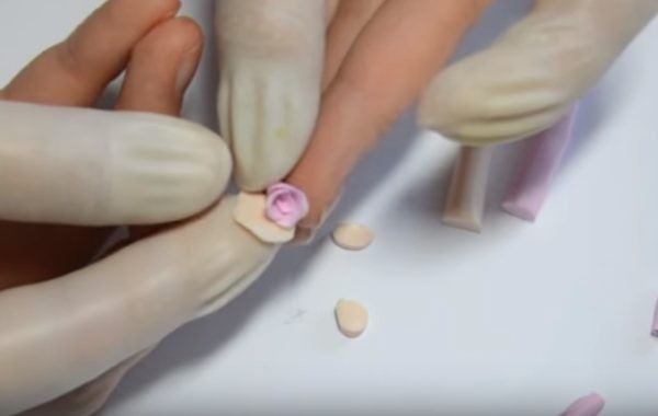Делаем по 15 бутонов и роз. Ставим запекать их в духовой шкаф на 10 минут при температуре 110 градусов. Параметры могут меняться в зависимости от марки полимерной глины.