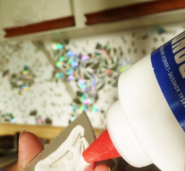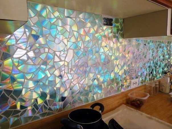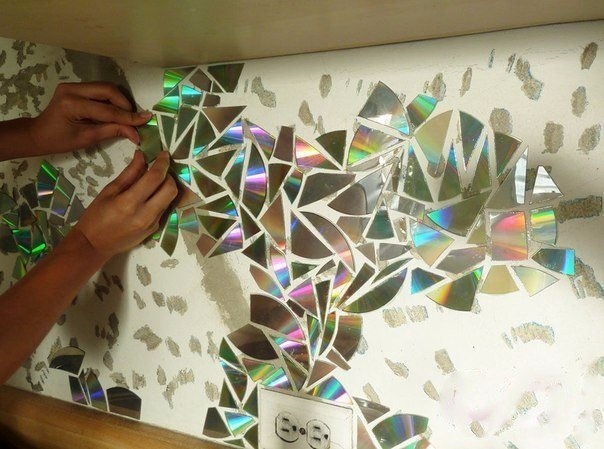 Спасибо за идею,получилось интересно. Подскажите пожалуйста каким клеем пользовались при создании этого шедевра,какими ножницами пользовались для нарезки деталей. Еще дополнительный вопрос, можно ли эти диски наклеить на потолок из ДВП? Спасибо!!!