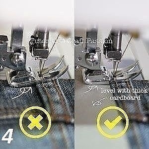 4. Для облегчения строчки на толстых участках подложить картон под заднюю часть лапки