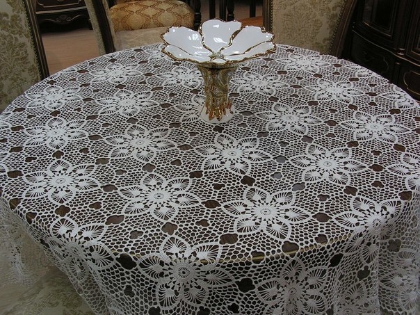 Красота. А скатерть круглая получается или можно ее прямоугольную сделать?