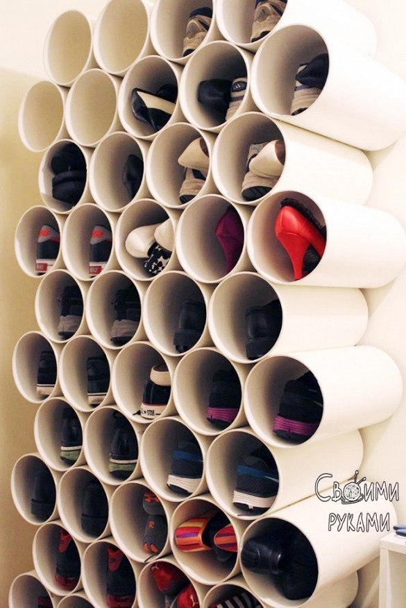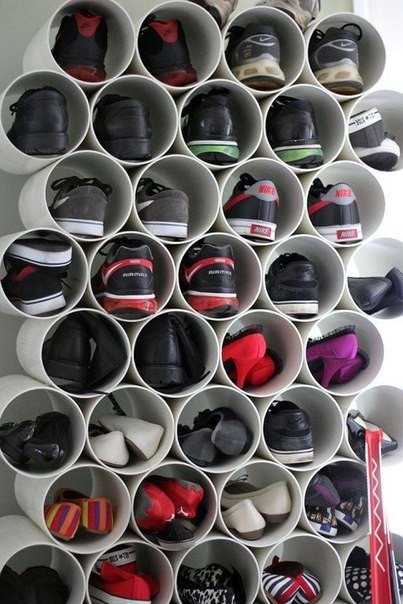 Присматривалась я уже к этой идее - труба такого диаметра стоит недешево, а на одну ячейку нужно сантиметров 30, умножаем на 10 пар обуви - итого 3м. 3м трубы будет около 4000 р, а то и больше. И где смысл? Лучше готовую обувницу купить,чем такой самопал (уж не считая усилий, чтобы найти трубу(а такой диаметр не в каждом магазине найдется),привезти ее и уговорить мужа ее разрезать (соединить и сами сможем). Реально- ерунда.