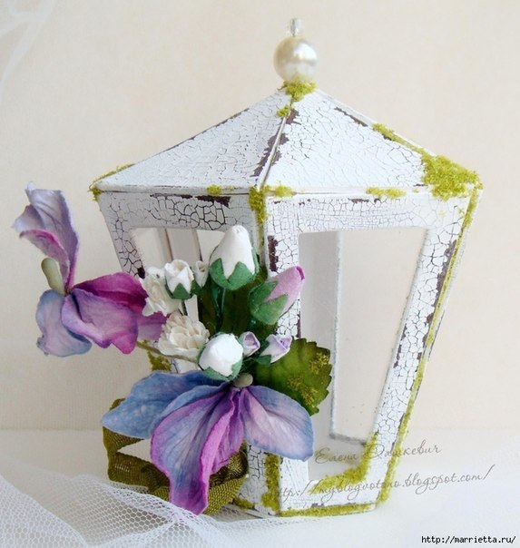 Светлана. потресканный белый верх-это кракелюр . можно из ПВА и белой акриловой краски, можно специальным клеем. а мох продается в магазинах для рукоделия и флористи