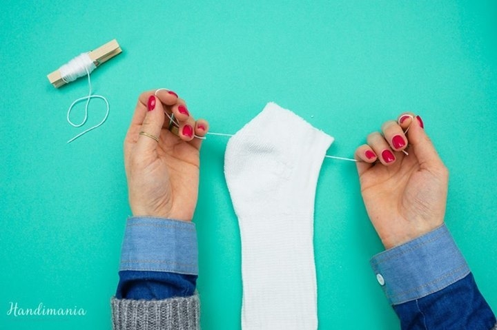5. Перевяжите носок сверху ниткой.