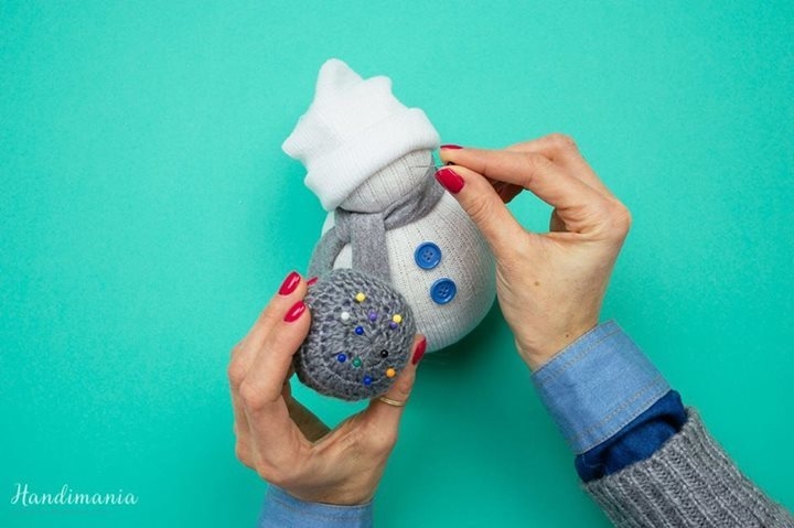 8. Из второй части носка сделайте снеговику шапочку.