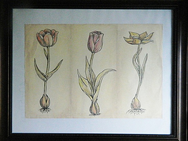 Тюльпаны Эта несложная картинка, оформленная в раму, может стать прекрасным украшением стены, как дома, так и где нибудь на рабочем месте, а приглушенные тона отлично впишутся в часто употребляемые в дизайне интерьера бежево-розовато-коричневые оттенки. Для работы нам понадобится лист бумаги для пастели цвета слоновая кость размером близким к А3, карандаш, кисть с тонким кончиком, лучше синтетика номер 2 или 3, черная тушь, ластик, набор пастели. Лист кладем менее рифленой стороной вверх, и делим...